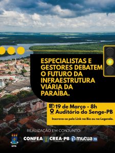 Especialistas, gestores públicos e representantes de instituições estratégicas estarão reunidos no próximo dia 19 de março, a partir das 8h, no Auditório do Senge-PB, em João Pessoa, para discutir os desafios e perspectivas da infraestrutura viária da Paraíba.