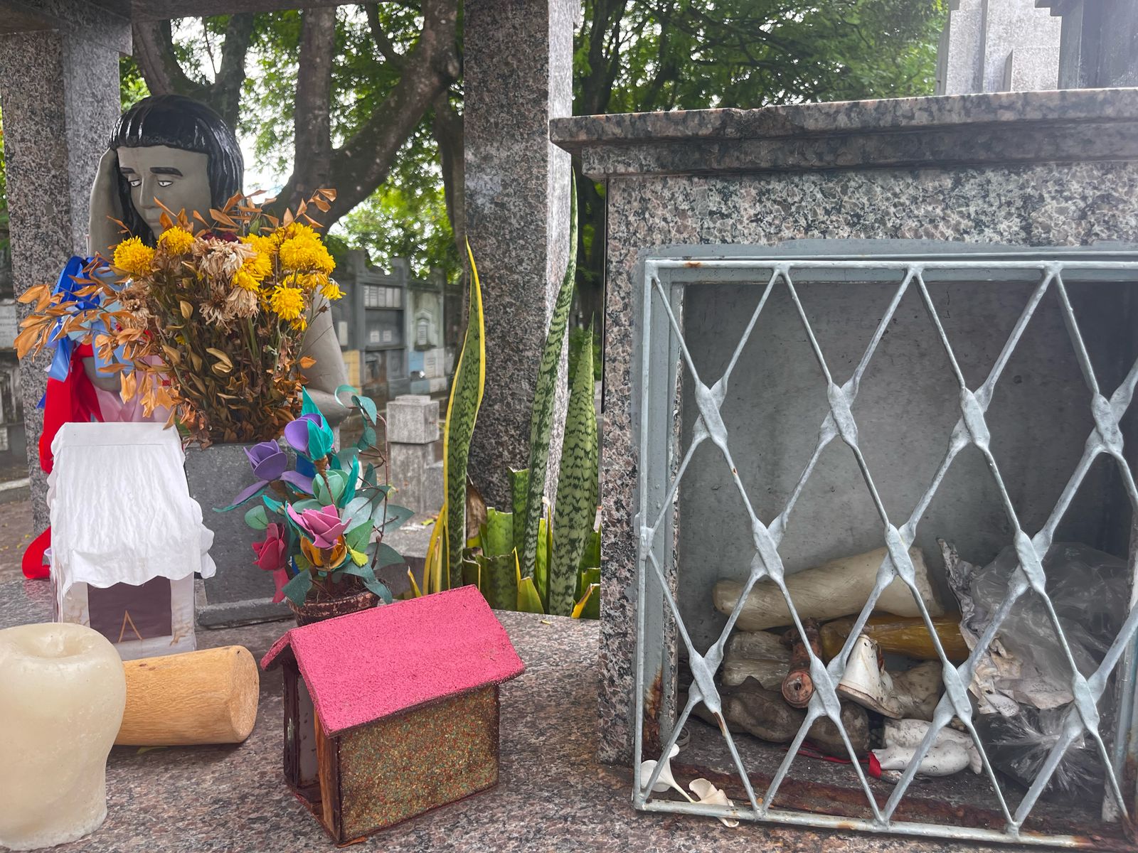“Ela foi enterrada naquela outra quadra ali, dentro do cemitério, em uma cova de terra. Aí uma pessoa fez a promessa com ela e fez esse esse pergolado”, conta o zelador.