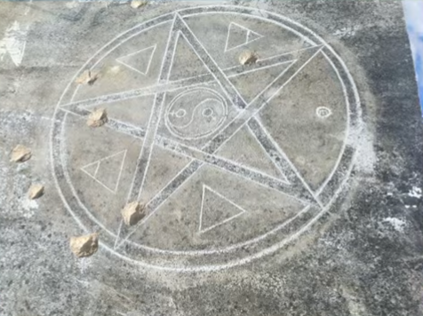 A suspeita de ritual foi iniciada após ser identificado um símbolo com estrelas e formatos geométricos desenhado no chão.