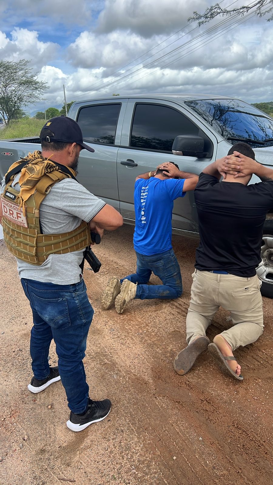 Durante a abordagem, dois suspeitos que estavam no carro de apoio foram presos em flagrante. Com eles, foi apreendida uma arma de fogo de posse ilegal. Um terceiro envolvido também foi localizado e detido ao longo das diligências.
