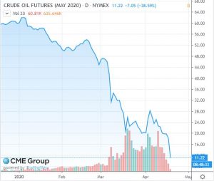 Vamos para os dados gráficos petróleo e sua maior queda em décadas.