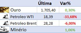 Para os mercados o foco está na retomada das economias, em uma possível segunda onda de contaminação e na guerra de preços do petróleo. Este tem atingido quedas expressivas a cada dia de negociação devido à baixa demanda pela commoditie. Para investidores mais experientes, a demanda por petróleo é o termômetro da economia mundial.