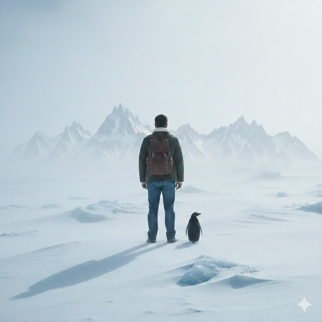 A internet apelidou a cena de “o pinguim niilista”. Talvez porque ela traduza, em silêncio, uma pergunta incômoda: por que alguém abandona a colônia mesmo sabendo que o caminho adiante é inseguro?