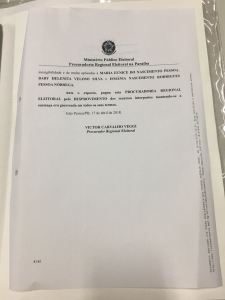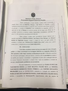 “Com efeito, as práticas escusas em busca da compra de votos e apoio politico e do direto envolvimento da investigada, Ismânia, na campanha eleitoral de 2016, apoiando a então chapa vencedora, encabeçada por sua mãe, evidenciaram à presença das elementares participação, ainda que indireta, e anuência, além da gravidade da conduta e sua aptidão para macular a normalidade e legalidade do pleito ante a utilização indevida de recursos financeiros direcionados a comprar voto a e apoio de candidatos a vereador da oposição, transformando candidaturas em mercadorias”, diz o parecer do procurador.
