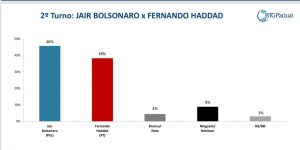 No segundo turno, Bolsonaro empataria com 42% com o Ciro Gomes (PDT). Diante de Fernando Haddad (PT), o candidato do PSL ficaria com 46% dos votos e Haddad com 38%. O candidato do PSL também venceria contra Geraldo Alckmin (PSDB) por 43% a 36%. No cenário com Marina Silva, o candidato do PSL também venceria, 48% a 33%.