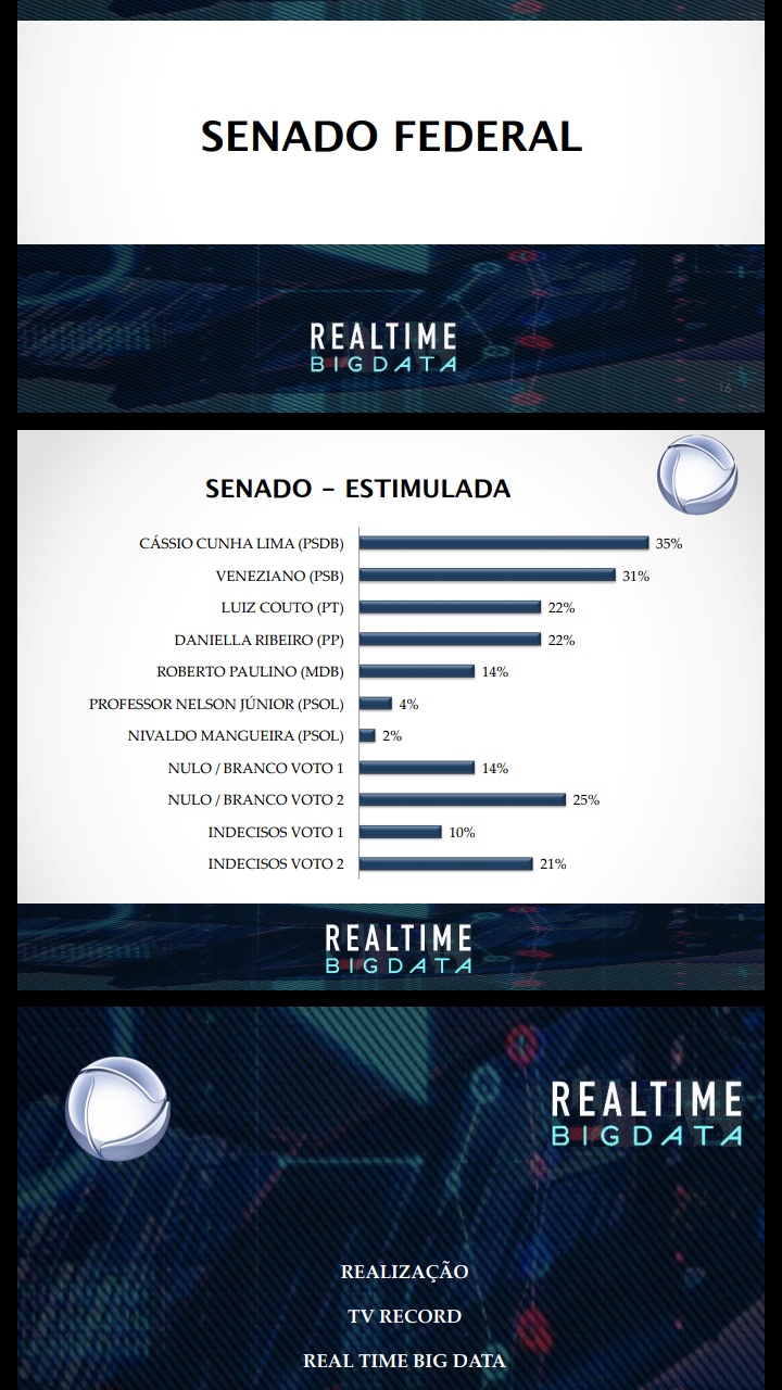 A pesquisa do instituto Real Time Big Data foi registrada sob o número PB-00569-2018 e contratada pela TV Record. Ao todo foram entrevistados mil eleitores no estado da Paraíba entre os dias 21 e 22 de setembro. O nível de confiança é de 95%. A margem de erro é de até 3 pontos percentuais para mais ou para menos.