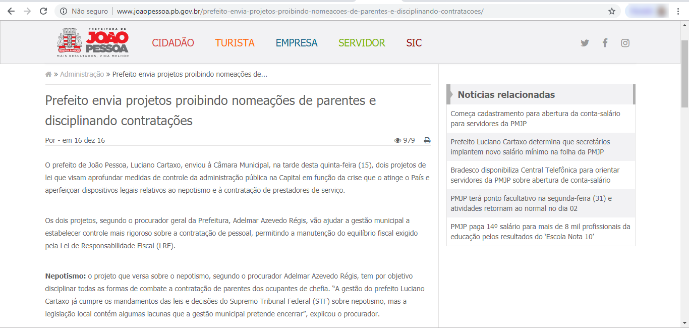 “A gestão do prefeito Luciano Cartaxo já cumpre os mandamentos das leis e decisões do Supremo Tribunal Federal (STF) sobre nepotismo, mas a legislação local contém algumas lacunas que a gestão municipal pretende encerrar”, explicou.