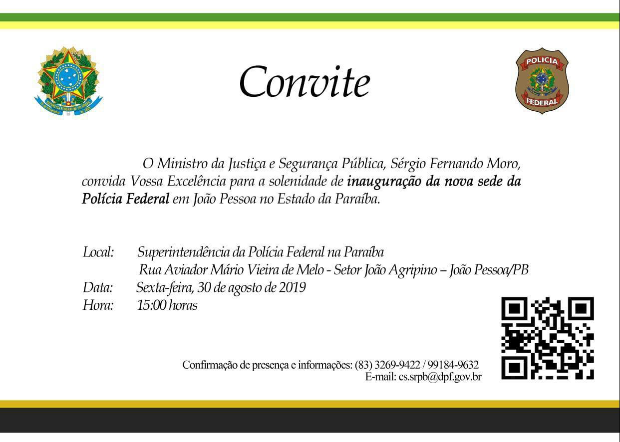 Convite distribuído pela Polícia Federal confirma a agenda do ministro em João Pessoa (Reprodução)