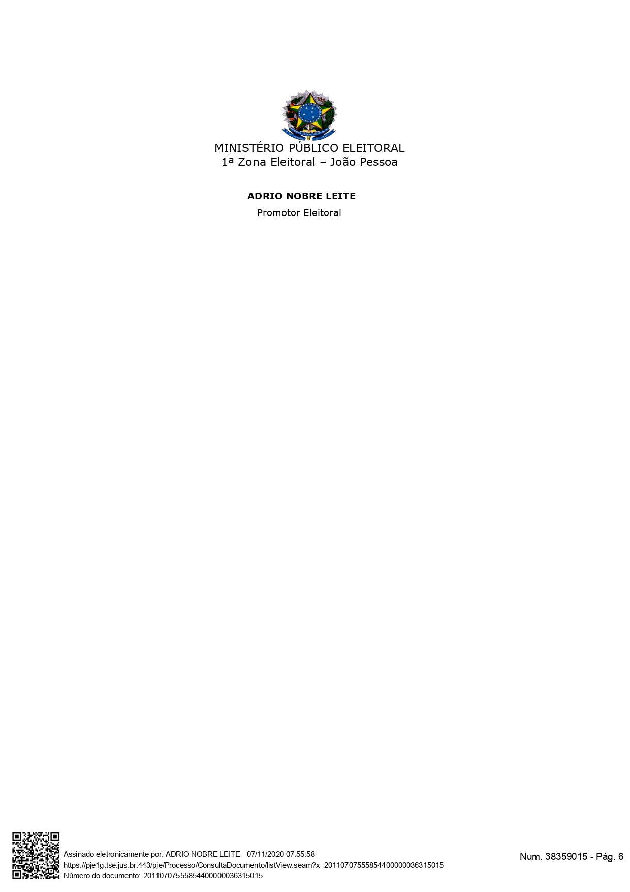 A decisão foi assinada pelo promotor Eleitoral Ádrio Nobre Leite. Confira na íntegra: