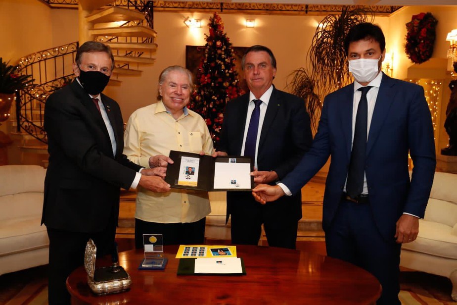 O presidente Jair Bolsonaro (sem partido) se encontrou com Silvio Santos, nesta terça-feira (15), em cerimônia de entrega de um selo que homenageia o fundador do Sistema Brasileiro de Televisão (SBT).