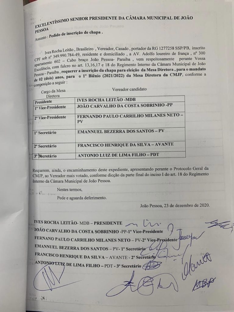 O vereador eleito Mikika Leitão (MDB) entrou oficialmente na disputa pela presidência da Câmara Municipal de João Pessoa (CMJP). Ele registrou nesta quarta-feira (23) chapa para a disputa da Mesa Diretora da Casa Napoleão Laureano.