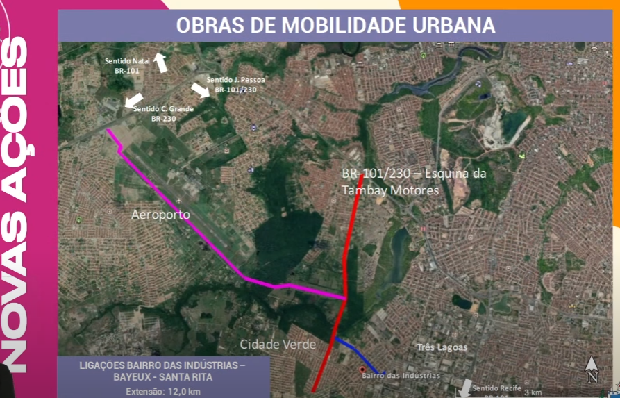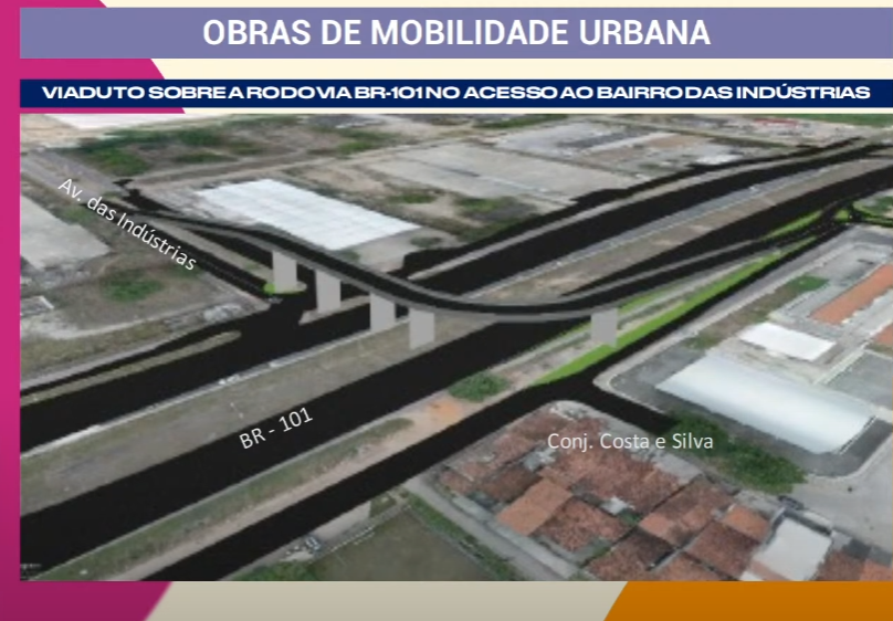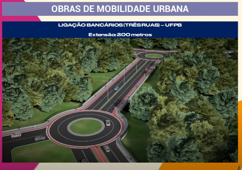 As obras de mobilidade urbana serão realizadas no Viaduto sobre a BR-101 no Bairro das Indústrias (R$ 8,5 milhões); ligação do Bairro das Indústrias/Bayeux (R$ 6,64 milhões); ligação UFPB – Altiplano, na Av. João Cirilo – Hospital Universitário (R$ 14,7 milhões); ligação PB-008 – Mangabeira-V (R$ 2,5 milhões); ligação do Bairro das Indústrias – Santa Rita (R$ 3,5 milhões); ligação da UFPB – Três Ruas nos Bancários (R$ 12,3 milhões); vias do Polo Turístico Cabo Branco (R$ 1,9 milhão); Rua João de Souza Maciel – BR-230, em Cajazeiras (R$ R$ 3,31 milhões); construção da ponte sobre o rio Mamanguape, na PB-067 – estrada do Abacaxi, em Itapororoca (R$ 5,5 milhões), somando R$ 58,85 milhões.