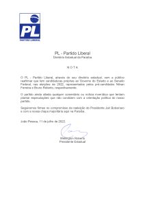 No documento assinado pelo presidente da sigla, o deputado federal Wellington Roberto, o PL afirma que” afasta qualquer comentário ou notícia inverídica que tentam plantar especulações que não condizem com a orientação política do nosso partido.”