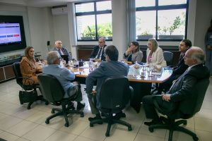 Ocorrido no Gabinete da Presidência, o encontro com a senadora Daniella Ribeiro teve as participações do vice-presidente Fábio Nogueira, do presidente da 1ª Câmara Fernando Catão, do coordenador da Escola de Contas Arnóbio Viana e diretores do TCE. Ainda, da Procuradora do Trabalho Andressa Coutinho, da presidente do Conselho de Secretarias Municipais de Saúde Soraya Galdino e do Procurador Geral do Ministério Público Federal José Guilherme Ferraz da Costa.