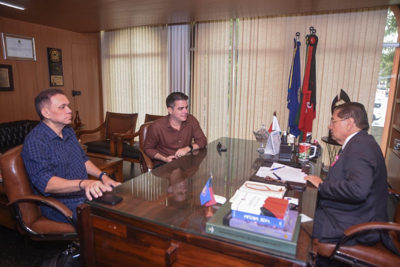 O presidente da Assembleia Legislativa da Paraíba (ALPB), Adriano Galdino, recebeu nesta quinta-feira (2), na sede do Poder Legislativo, os secretários municipais de João Pessoa e pré-candidatos a deputado estadual Diego Tavares e Dudu Soares. Durante a visita, Adriano destacou a importância do diálogo com lideranças que desejam ampliar sua atuação política, reforçando que a Assembleia está aberta para ouvir propostas e contribuir com o fortalecimento da cidadania no estado.
